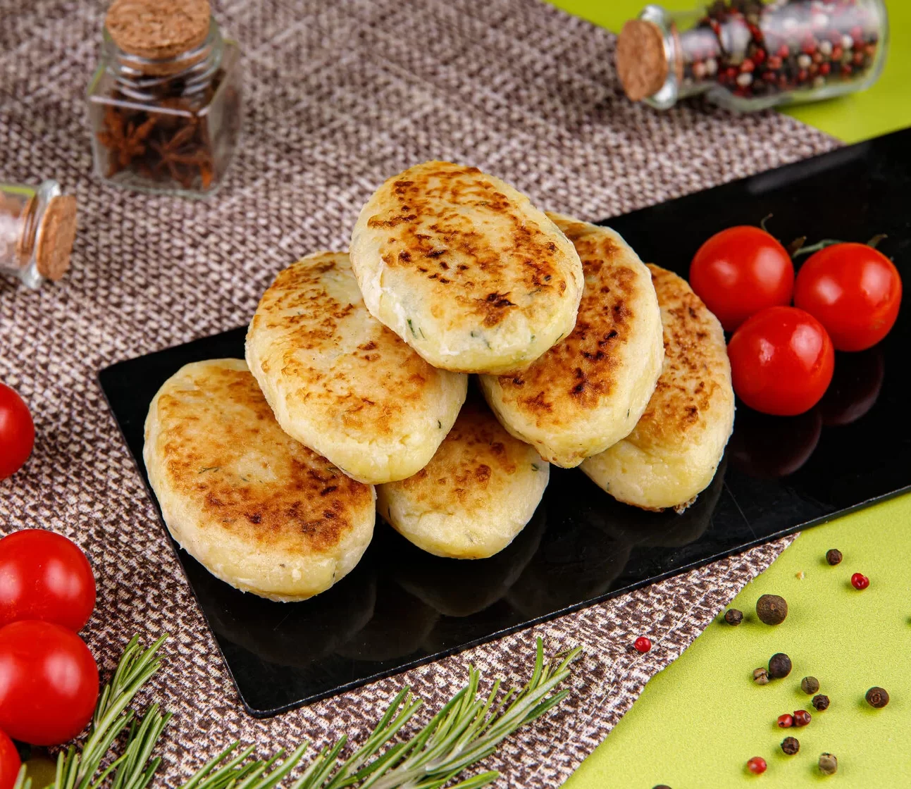 Картофель, шампиньоны, укроп, соль, перец, масло подсолнечное, мука, лук репчатый пассерованный.